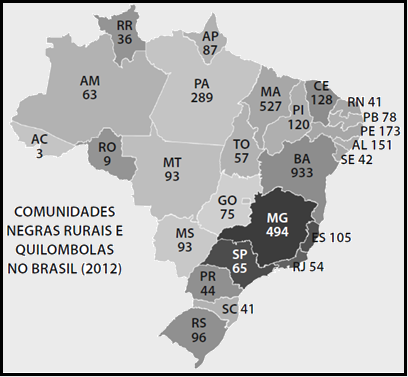 Ao relacionar imagem e texto, percebe-se que a quantidade de comunidades quilombolas em Goiás é de